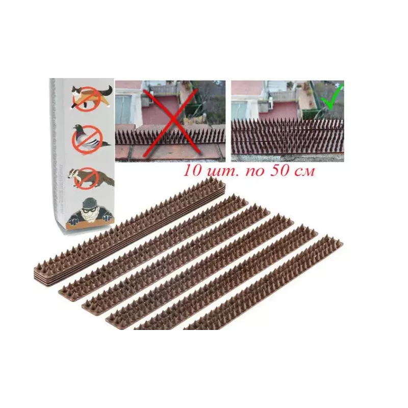 An effective means of protecting fences, roofs, facades, cornices, air conditioners, window sills from birds, cats and other animals.