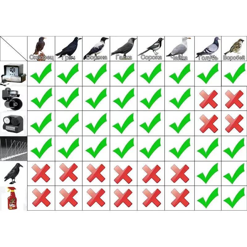 Will help get rid of pigeons and other birds on facades, roofs, window sills, cornices, air conditioners, fences and other architectural forms.