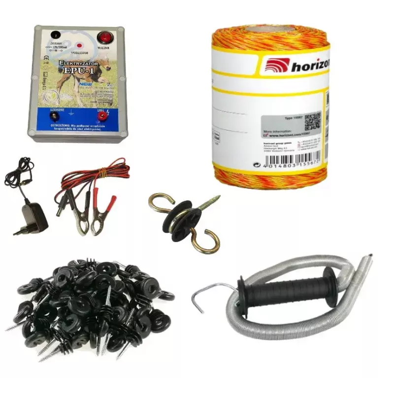 Комплект призначений для огородження площі в 1 га в одну лінію з розрахунку установки стовпчиків через 8-10 м. (Стовпчики в комплект не входять). Дана огорожа підходить для таких тварин як: корови, собаки, коні .
