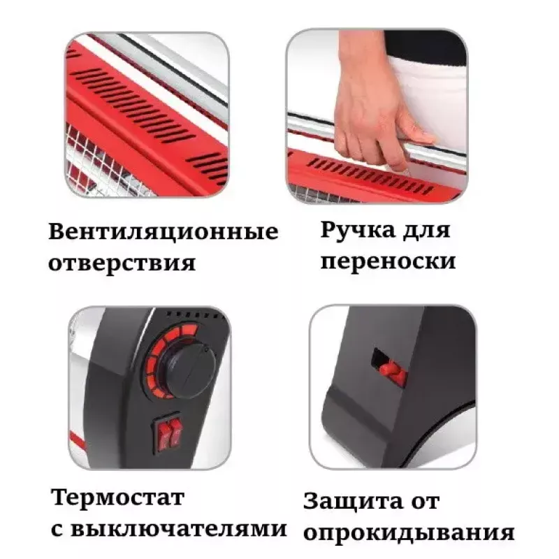 Современный дизайн, три нити накала, оцинкованный отражатель, з термостатом, с электростатическим порошковым покрытием. Естественный поток воздуха. Быстрый нагрев. Эргономичная удобная ручка для переноски. Безопасный выключатель, защита от опрокидывания. Все обогреватели прошли  АТТЕСТАЦИЮ СООТВЕТСТВИЯ С ЕВРОПЕЙСКОЙ ДИРЕКТИВОЙ ЄС, что говорит о высоком качестве товара.