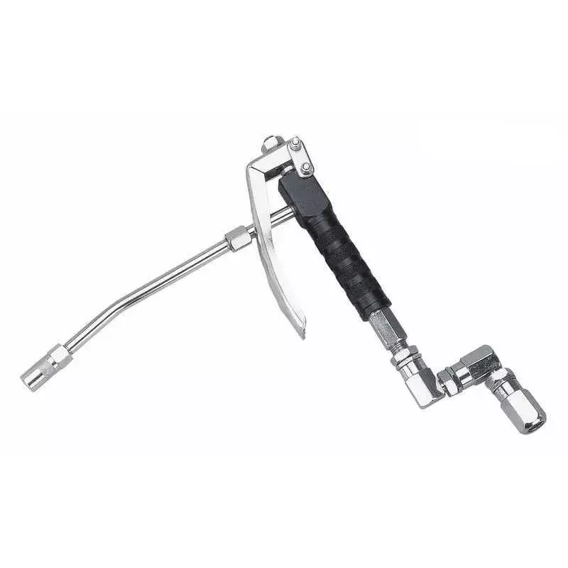 Особенности:Обеспечивает непрерывную подачу смазки при нажати на спусковой механизмПистолет оснащен поворотным шарниром на 360резиновая рифленая накладка с антискользящими свойствами гарантирует надежную фиксацию в рукеузкое и изогнутое сопло для упрощенного доступа к смазываемым участкам;высококачественная сборка и стальная конструкция рассчитаны на интенсивную работу и  обеспечивают прочность и долговечность пистолетаВ комплекте 150мм стальная трубка и профессиональная 4х лепестковая муфтаВнутренняя резьба 1/4"BSPT мамаРезьба на выходе 1/8"BSPTмама