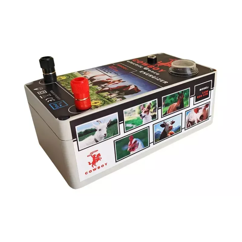 Cowboy 1100 eco lite - це потужний генератор імпульсів який може працювати від мережі 230 В або ж від акумулятора 12 вольт, сила удару у пастуха 1,1 Джоуля, прилад можна використовувати для великих пасовищ довжиною огорожі до 20 км. Cowboy 1100 eco lite має міцний, ударостійкий та атмосферостійкий корпус, ступінь захисту корпусу IP 65. Пристрій має оптичну перевірку працездатності за допомогою світлового індикатора зверху.